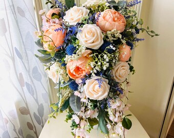 I had people come up and touch my silk bridal bouquet just. Peach coral rose bouquet wedding | silk wedding flowers | cheap bridal bouquets | bridesmaid bouquets | artificial wedding bouquets (two dozen roses) msrp: G was a customer of ours back in the old days of the shop and had been searching for me. See more ideas about flowers, wedding flowers, wedding. Wedding flowers bridal bouquet, blue peach ivory bouquets, custom bridal bouquet, flowers for destination wedding, hydrangeas, roses bloomsnbrooches 4.5 out of 5 stars (569) $ 14.00.